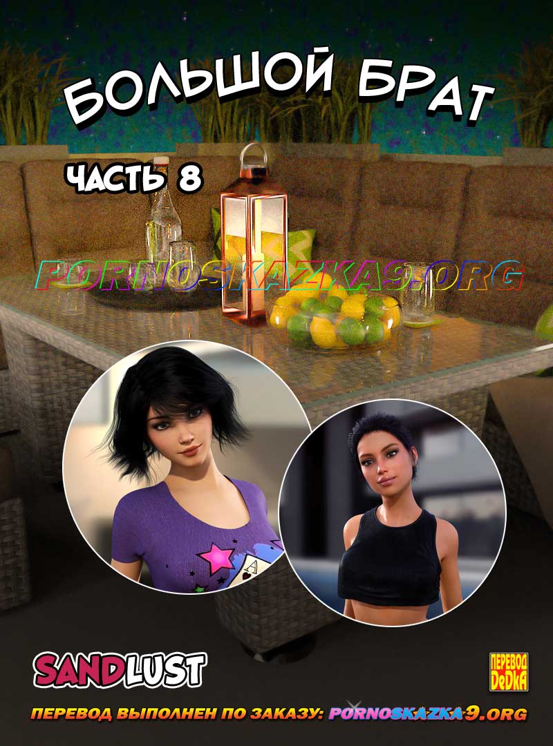 Порно комикс «Семейка грехов. Часть 56». После своих первых увлекательных развлечений в новом доме Джанин и Кэти мирно уснули. Они спали долго… Среди ночи Джанин проснулась от шума на заднем дворе…